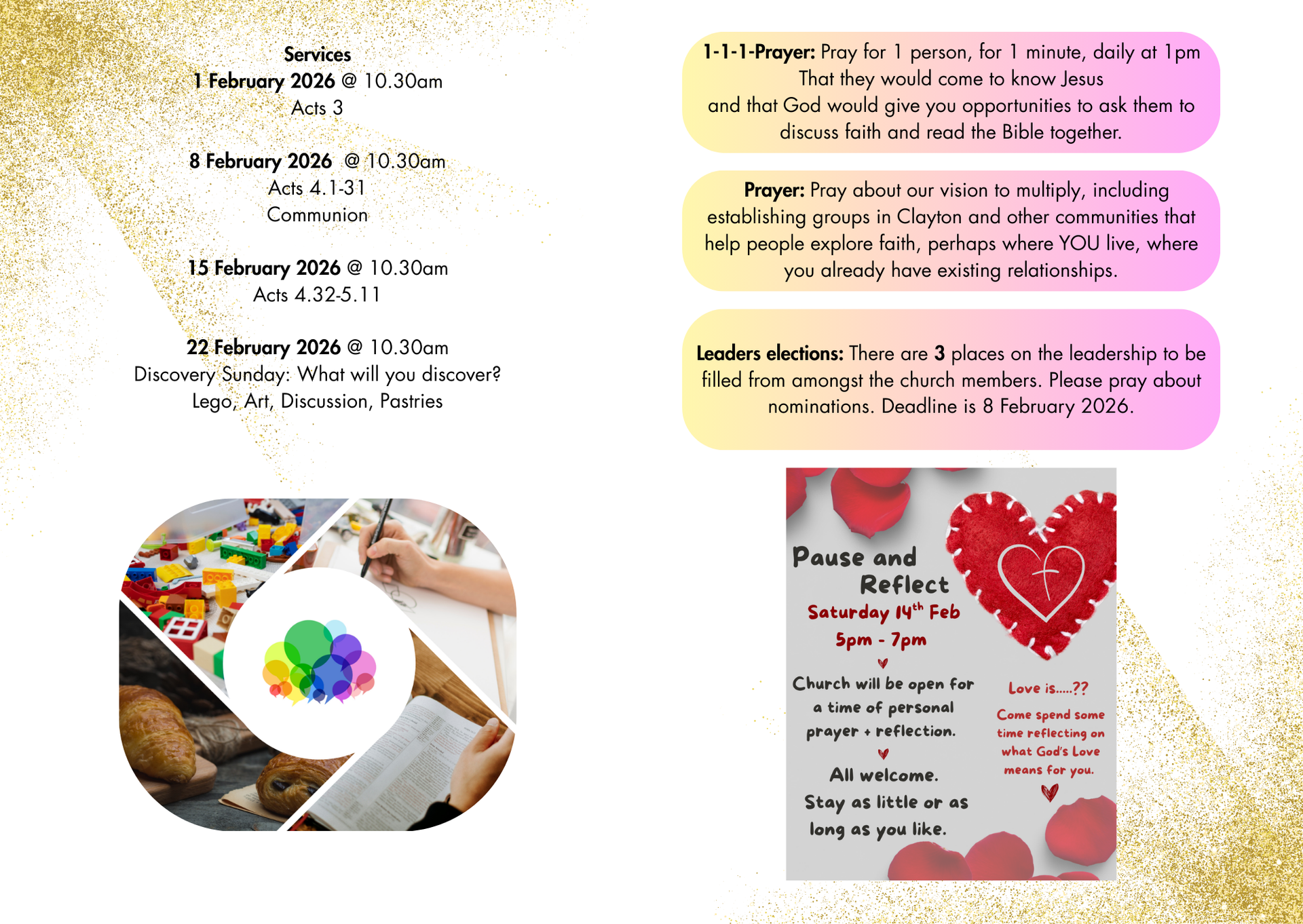 Once a month we have 'Discovery Sundays' which lego, pastries, art and discussing a Bible reading in small groups.
